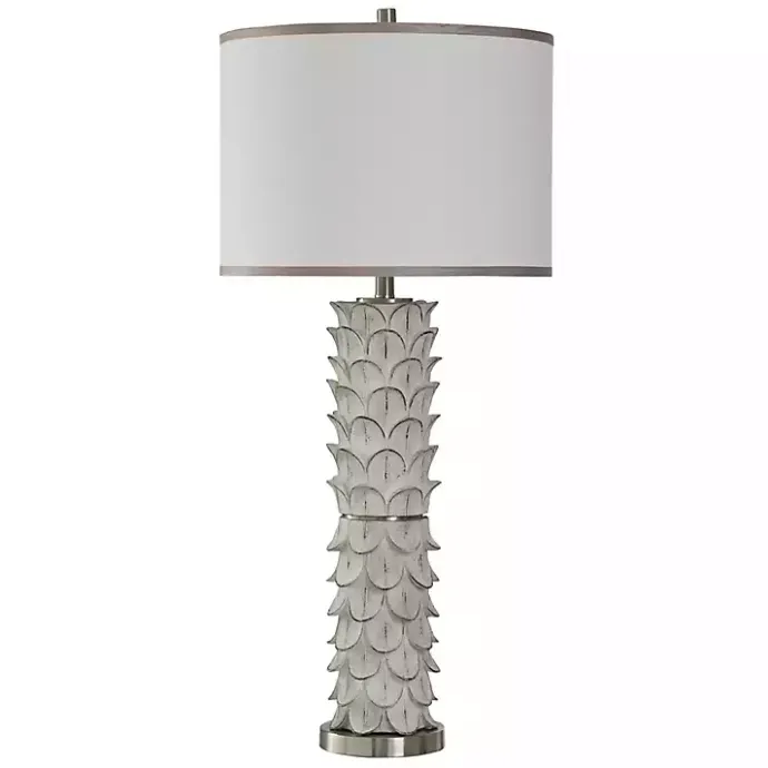 Bring texture and dimension to your space with this White and Silver Carved Tallulah Buffet Lamp! This lamp features an intricately carved design to accent your space with chic flair.