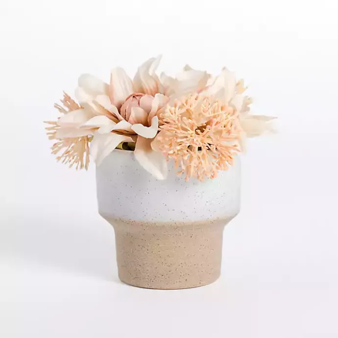 The soft colors of this Blush Dahlia Arrangement in Two-Toned Pot will add a delicate charm to any space! Its great for bringing a fresh floral touch into your home.