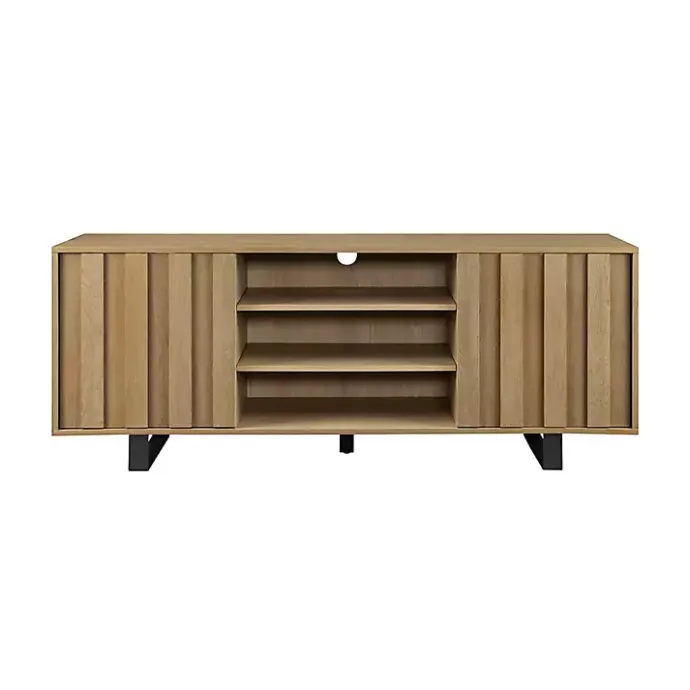 Add texture and depth to your living room with this modern Coastal Oak Grooved Media Cabinet! This cabinet includes adjustable shelves that can be repositioned to store games, movies, and decor. Setting up consoles and organizing cables is a breeze thanks to three cord management ports!