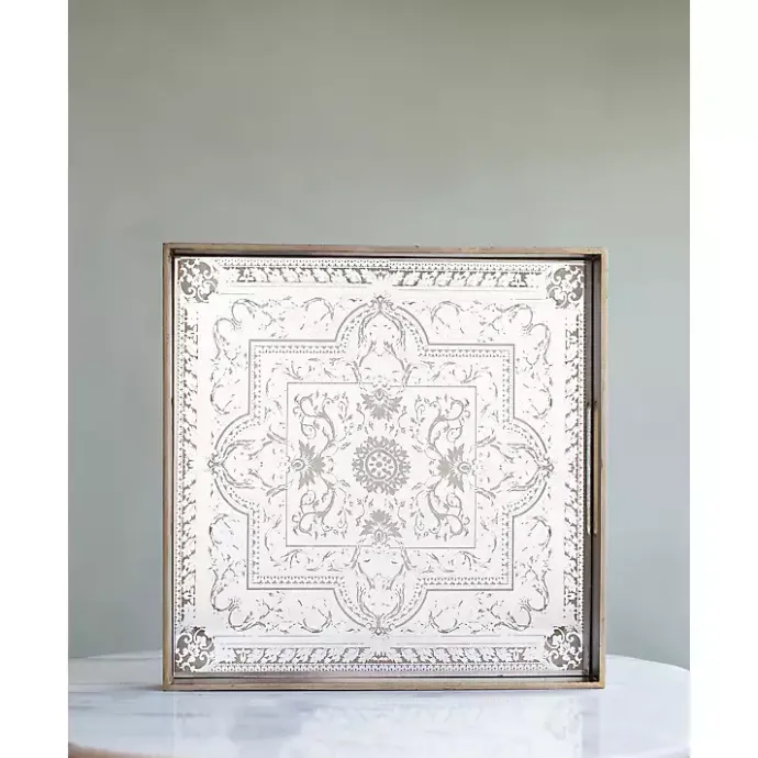 Display your favorite items in Moroccan fashion with this Cream Moroccan Pattern Tray with Gold Edges. You’ll love how its elegant design looks in any space!