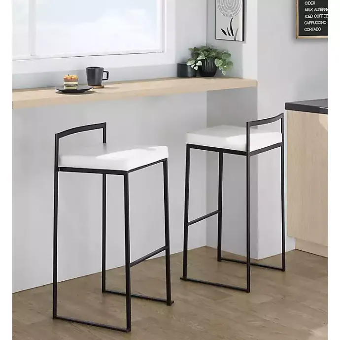 Elevate your space with a modern, minimalist touch! These White Faux Leather Stackable Bar Stools feature a sleek, stackable design to save room when they’re not in use. You’ll love their stylish look!