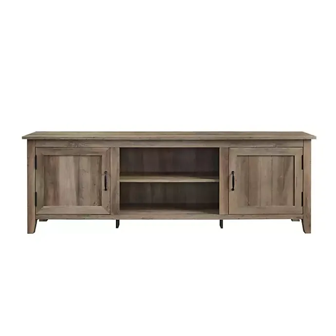 This Gray Wash Wood Grooved Door TV Stand balances style and function effortlessly, providing needed organization. You’ll have plenty of space for movies, games, and cable boxes. Its light wood finish is sure to enrich your space!