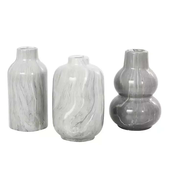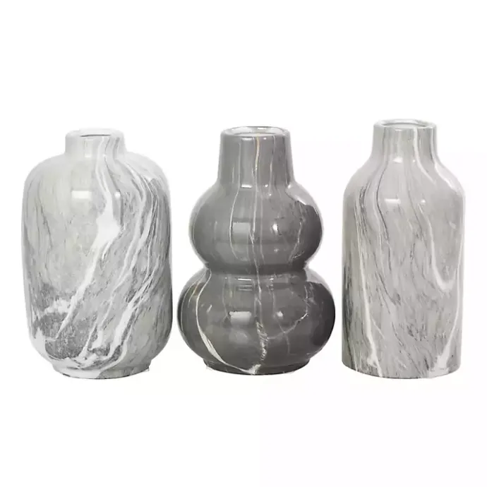 With a smooth, glossy finish and curved lines, these Gray Marble Finish Ceramic Vases will bring a modern charm to your space! Their neutral tones will beautifully complement bright flowers!