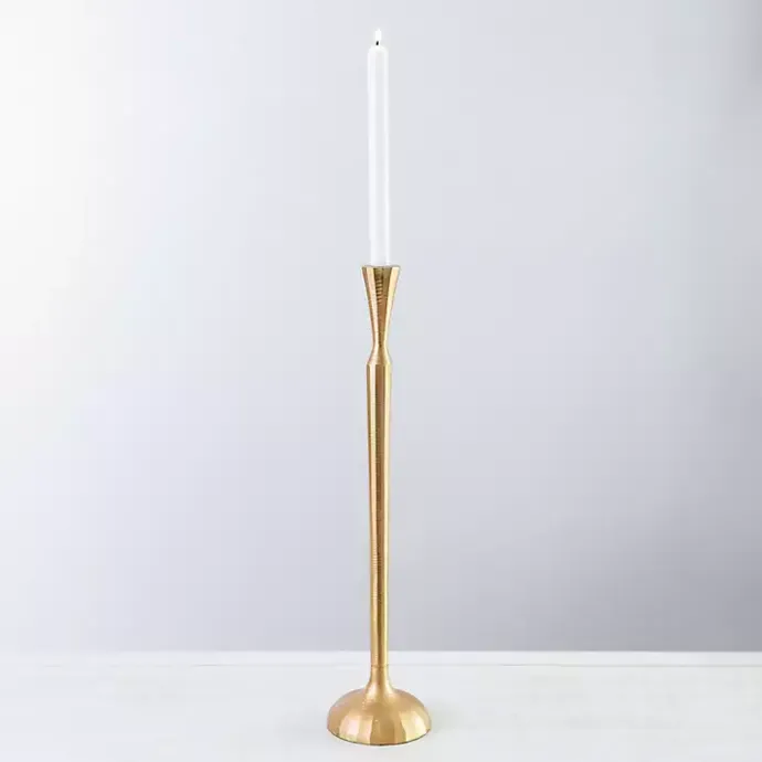 You’ll fall in love with our stunning Gold Metal Taper Candle Holder! A mix of old world and modern style are incorporated into this elegant candle holder.