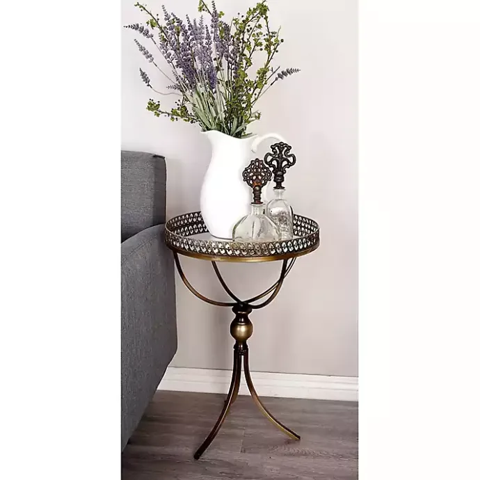 This Gold Mirror Top Metal Accent Table will look perfect next to your sofa or chair. Its gold finish and vintage-inspired style gives it a classic element. Plus, its mirror top makes it one-of-a-kind.