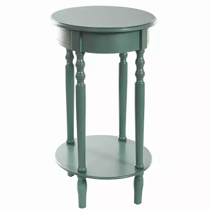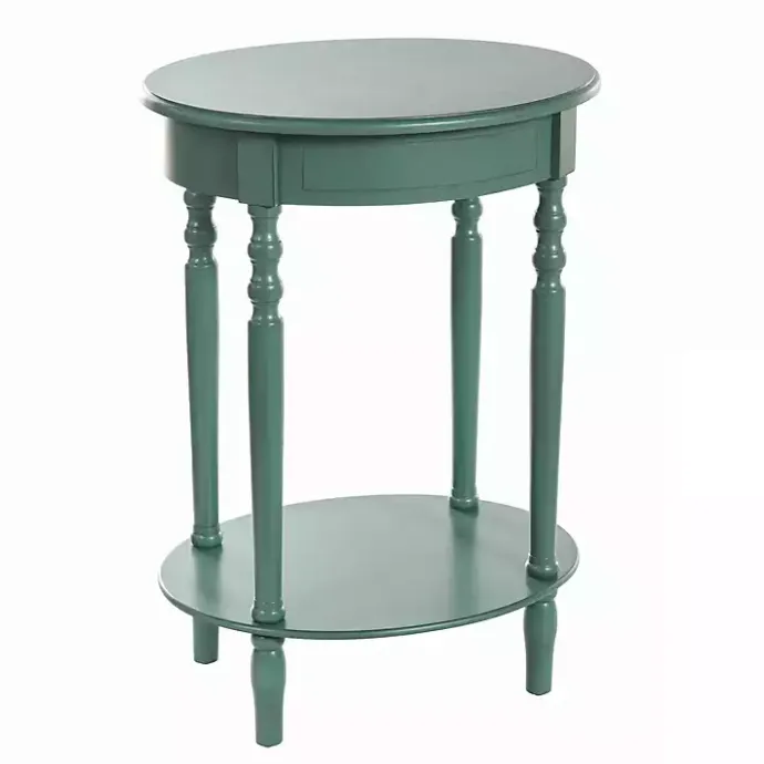 Refresh your space with this Turquoise Wood Oval Emily Accent Table! With traditional spindle legs and unique oval shape, you’ll love styling this two-tier table with your favorite home accents.