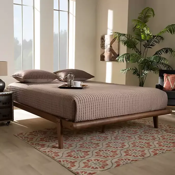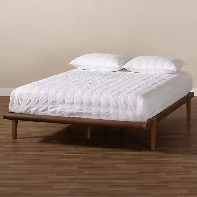 Transform your bedroom into the space of your dreams with this Walnut Brown Wood Full Platform Bed! Featuring an elegant finish and tapered legs, this simple design is perfect for your style.