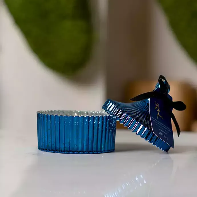 Bring winter forest air into your home without any of the frostbite! Herbal, eucalyptus, and woody notes create the fresh, natural scent of our Winter Frost Blue Mercury Glass Jar Candle.