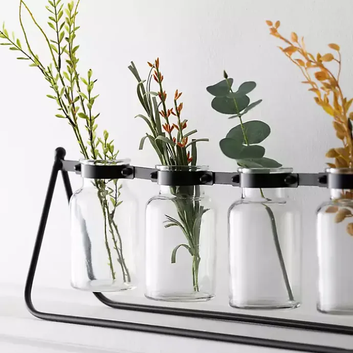 Display all your favorite florals in a unique, modern way with our Black 4-Bottle Runner Vase! You’ll love how this piece adds an element of style across any console table.