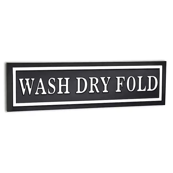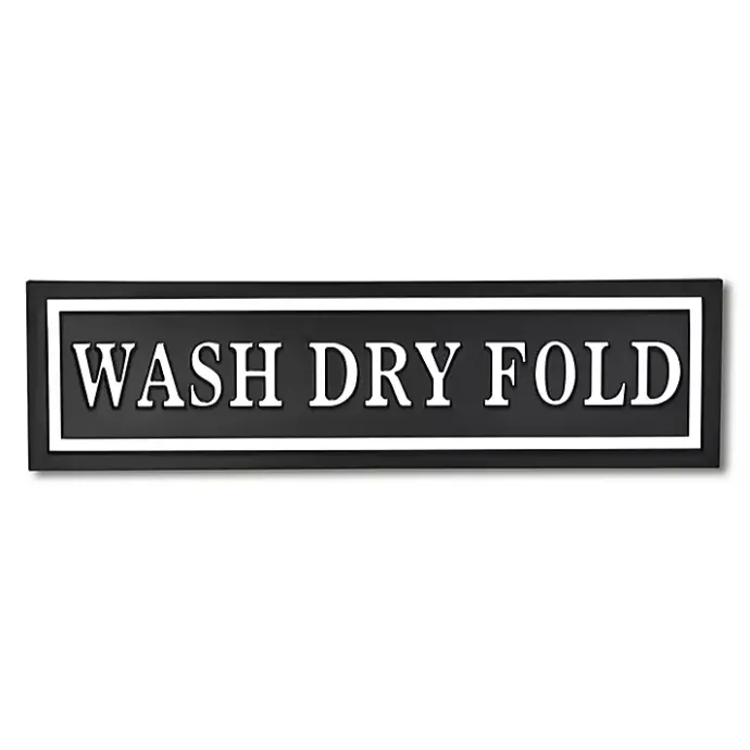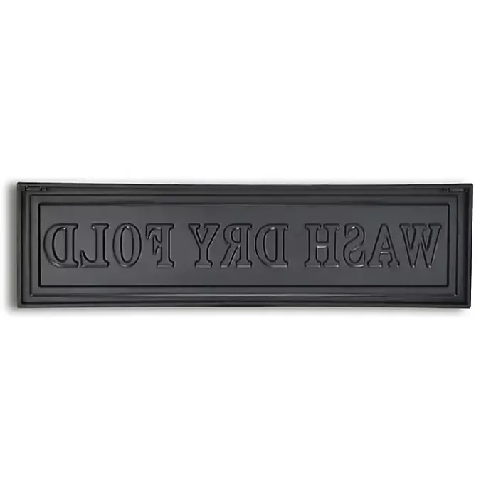The Black Metal Wash Dry Fold Wall Sign will remind you to take everyday chores one step at a time. Its glossy finish and two tone design will bring modern flair to your laundry room.