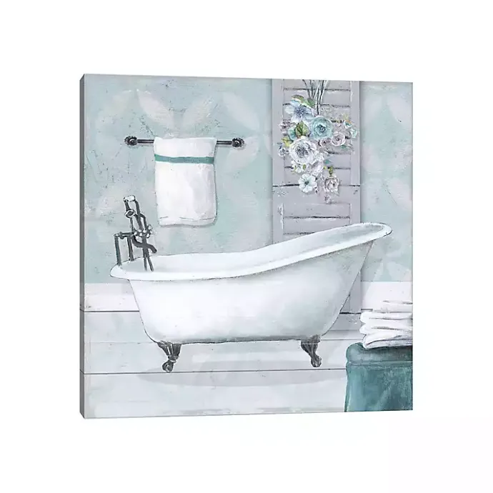 Add style to your bathroom with this Blue Bathroom Canvas Art Print. Featuring cool blue tones, this piece will make your space a little more relaxing!