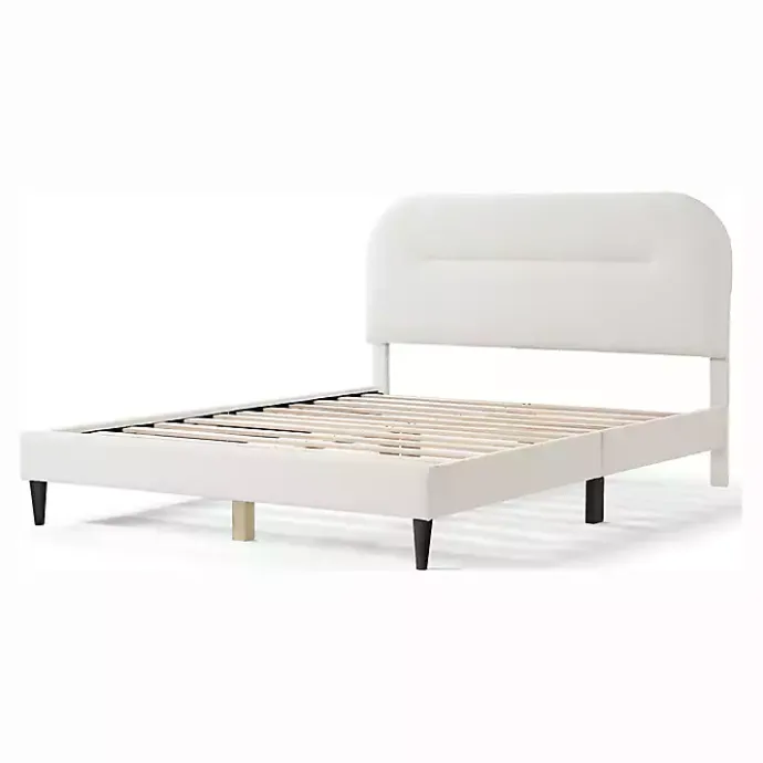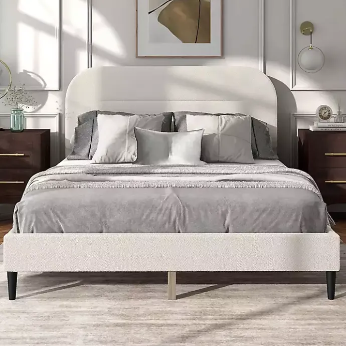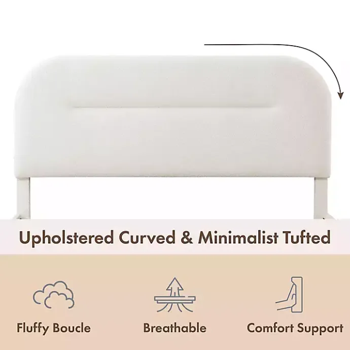 Give your bedroom a cozy makeover with this White Boucle Upholstered Sara Queen Bed! This bed features boucle upholstery with a tufted headboard to add texture and enhance your comfort.