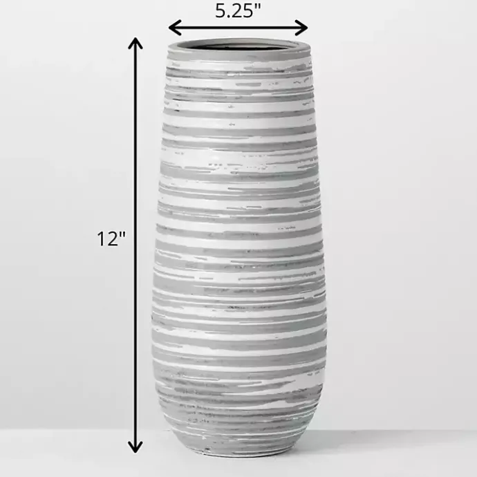 This Gray Ceramic Striped Vase features a two-tone finish that adds depth to its embossed, layered design. You’ll love the contemporary look it adds to your home.