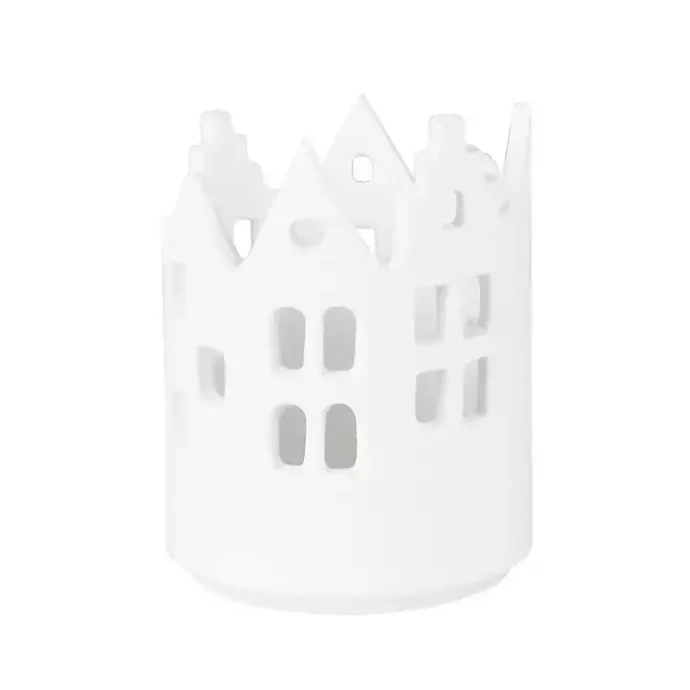 Give your table display a warm and cozy look with the White City Light Cityscape Votive Candle Holder. You’ll adore how any votive candle glows through the unique, architectural design.
