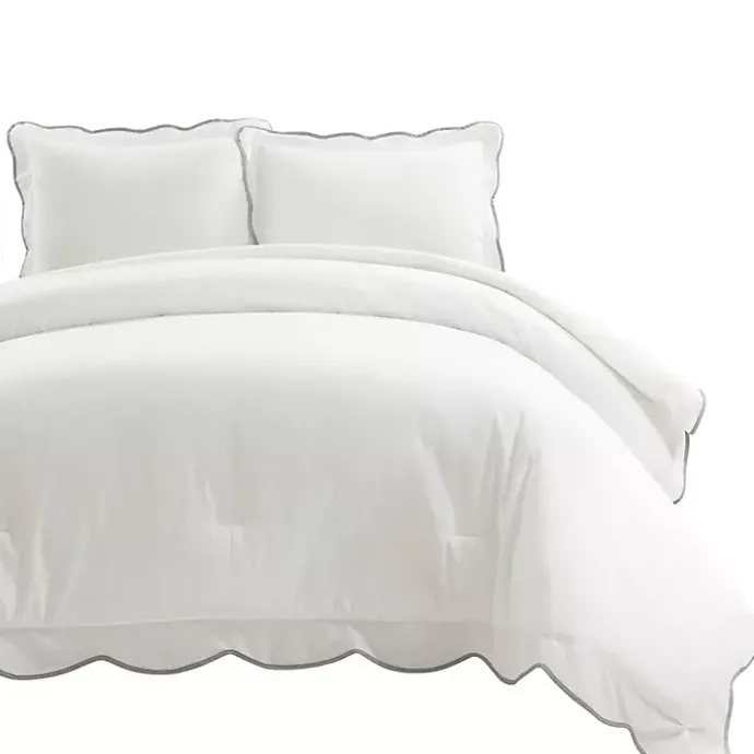 With a light, airy look, this Gray Scalloped Edge 3-pc. King Comforter Set will bring a coastal touch to your home. The scalloped edge gives the neutral set a lovely flair!