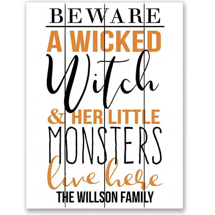 - Reads “Beware A Wicked Witch And Her Little Monsters Live Here”