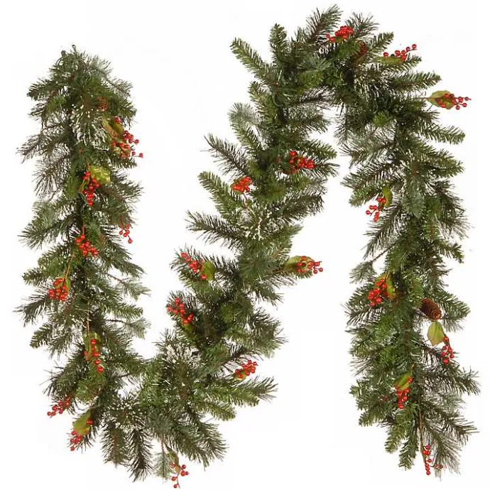 Transform your home for the winter holidays with this Pre-Lit Wintry Pine Christmas Garland! Designed with a Wintry Pine branch base, this garland is decorated with snow-dusted pinecones and berry clusters.
