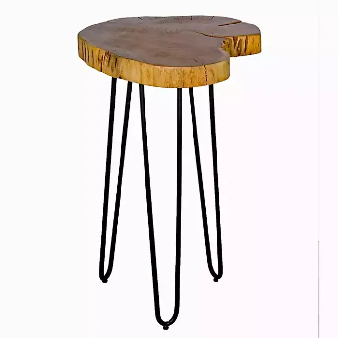 Add a piece of natural beauty to your home with this Round Natural Live Edge Hairpin Legs Accent Table. You’ll love the rustic, modern flair it gives your space! Use it as an end table in the living room or even as a stylish nightstand!