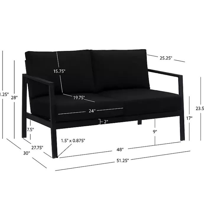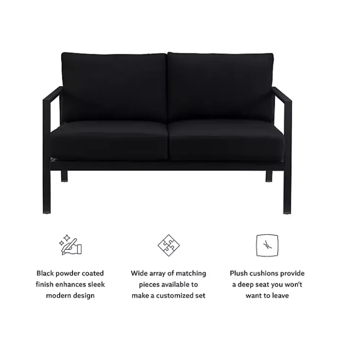 Make the most of the nice weather this summer with our Black Sunbrella Cushions Holland Outdoor Loveseat. From the porch to the patio, this chair’s modern style and comfortable design will elevate any outdoor space!
