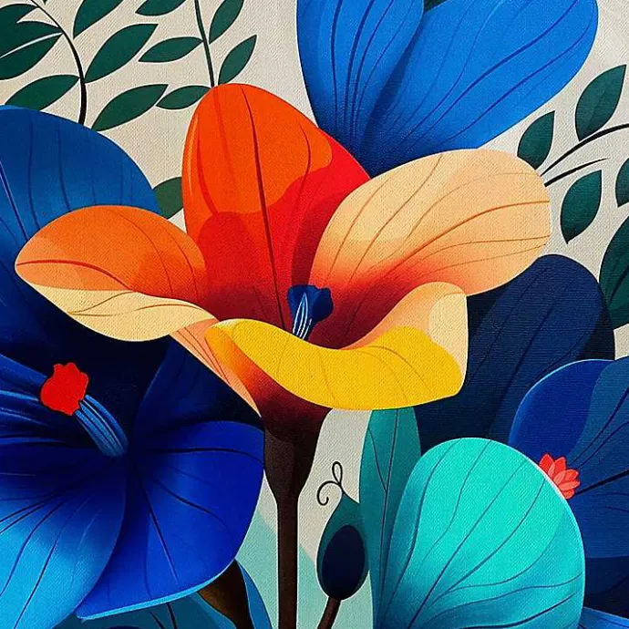 Alive with bold, electric colors, this Ultra Violet Blooms II Framed Canvas Art Print will make a statement on any wall. You’ll love how it brightens up your space!