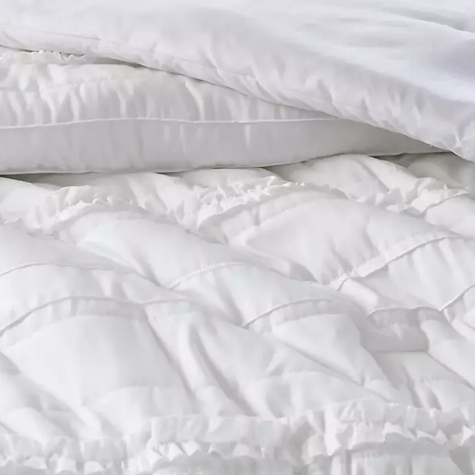 The delicate embroidery of the accent pillow adds a pop of color against the crisp white bedding. This White Quilted California King 5-pc. Comforter Set will add a homey look to your bedroom.