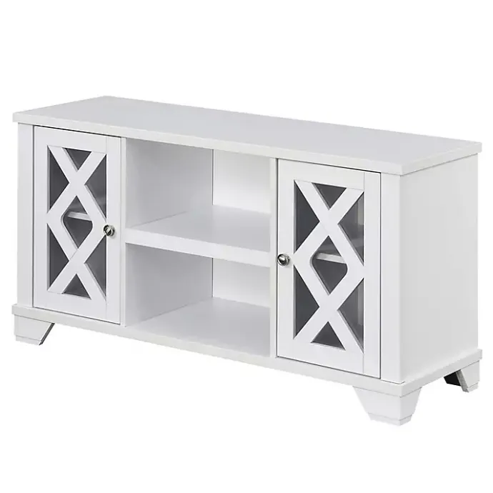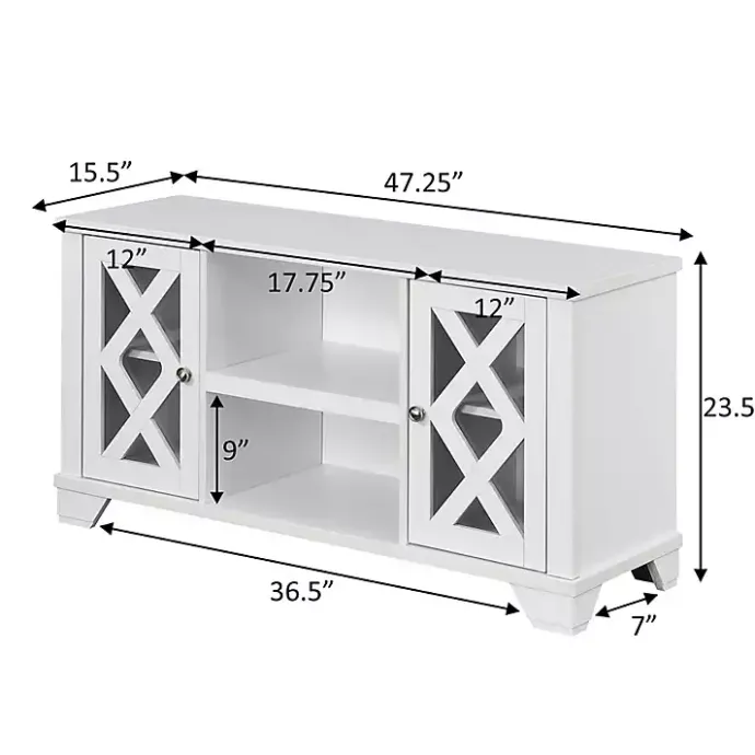 This White Wood X Doors Media Cabinet offers storage space with a stylish look to elevate your space! Perfect for keeping your living space organized, this cabinet gives you a durable, affordable, and modern storage solution!