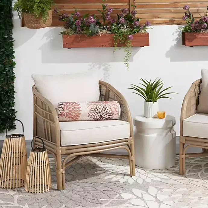 Keep your patio oasis looking chic and inviting with this Pink and Beige Floral Outdoor Bolster Pillow! You’ll love how this comfortable cushion completes your seating area.
