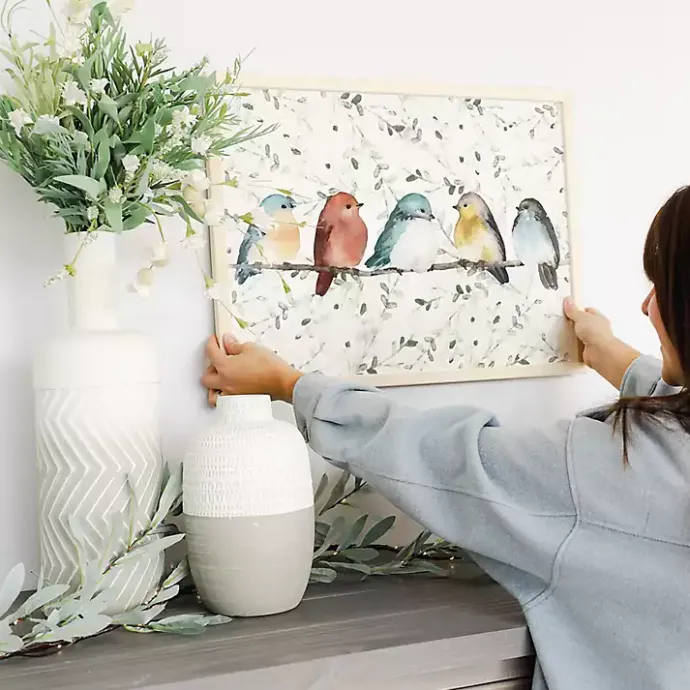 This Bird Friends on a Branch Framed Art Print adds a quaint charm to any wall. Featuring an adorable bird group, it will make your space a little sweeter!