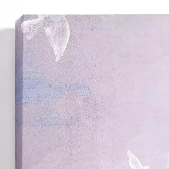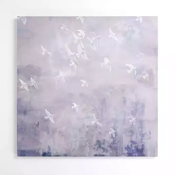 Give any wall a breathtaking view with this Birds in a Purple Sky Canvas Art Print. Soft purples and blues create a dreamy backdrop for these ethereal birds to take flight!