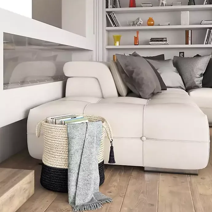 Store those random blankets, toys, or shoes in our Black and White Woven Basket with Tassel. You’ll love the woven texture and decorative tassel on this basket.