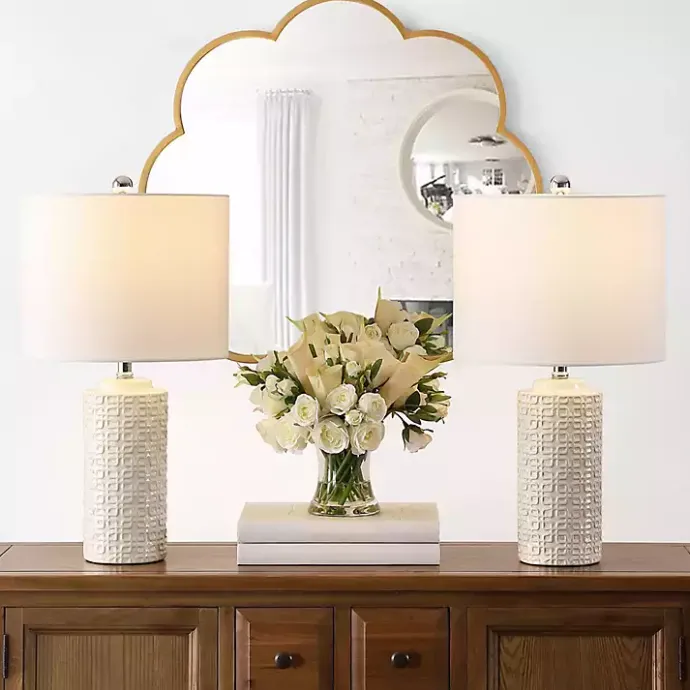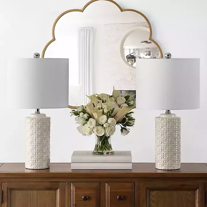 The set of Ivory Ceramic Motif Table Lamps will look perfect on your entryway console table or bedroom nightstands. The raised geometric patterns add a modern-chic touch!