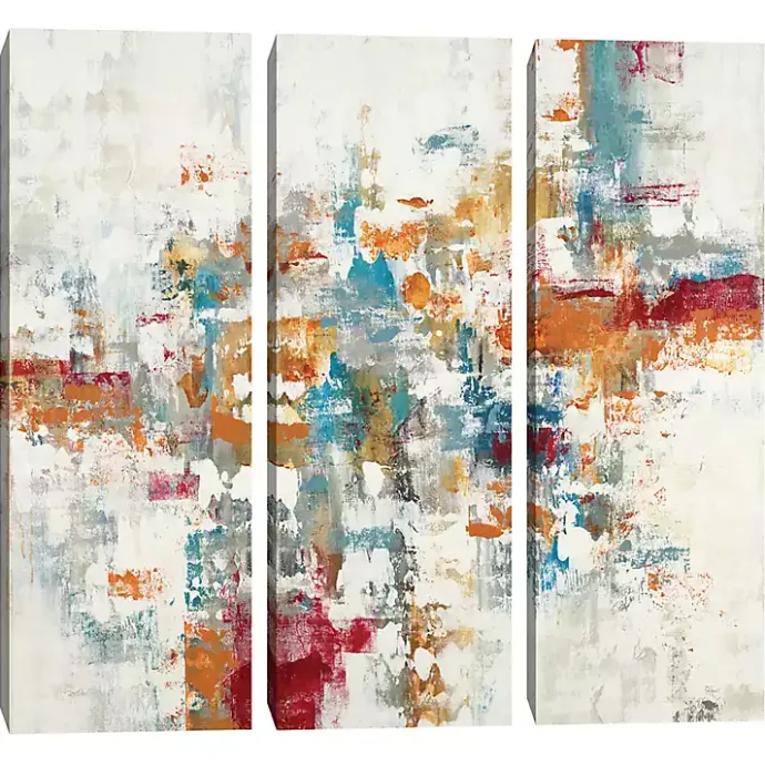 The set of Conclusion Found I Canvas Art Prints feature a blend of bold oranges, pinks, and blues against faded grays. Hang the stylish set in your home office!
