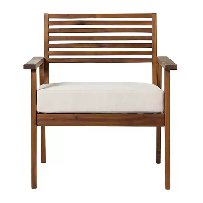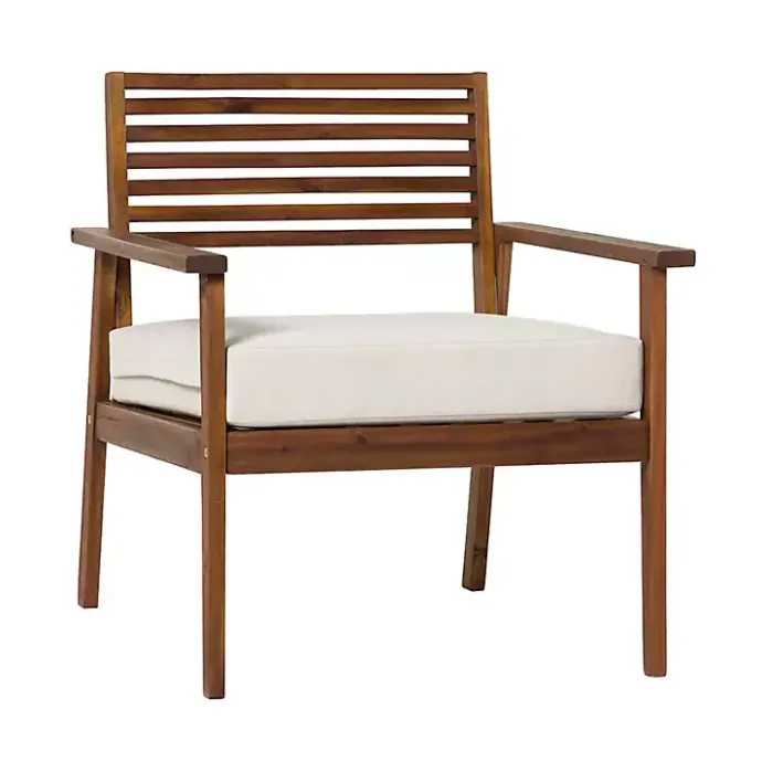 The Dark Brown Zane Outdoor Club Chair features a slatted backrest and angled frame, bringing your sense of style under the sun. Crafted from responsibly sourced acacia wood, this chair will look beautiful for years with proper care.