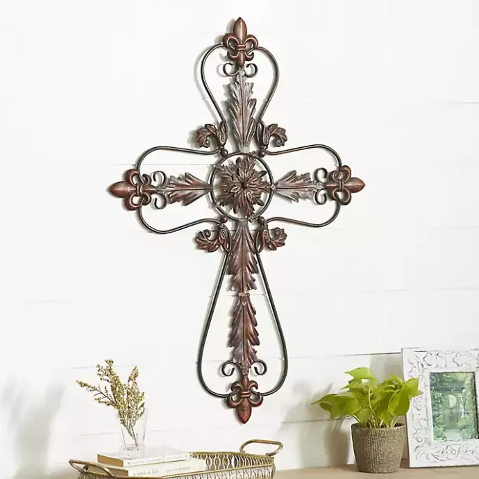 With an ornate, vintage-inspired design, this Fleur De Lis Metal Cross Wall Plaque boasta a timeless charm. It will look wonderful above your bed, mantel, or doorway!