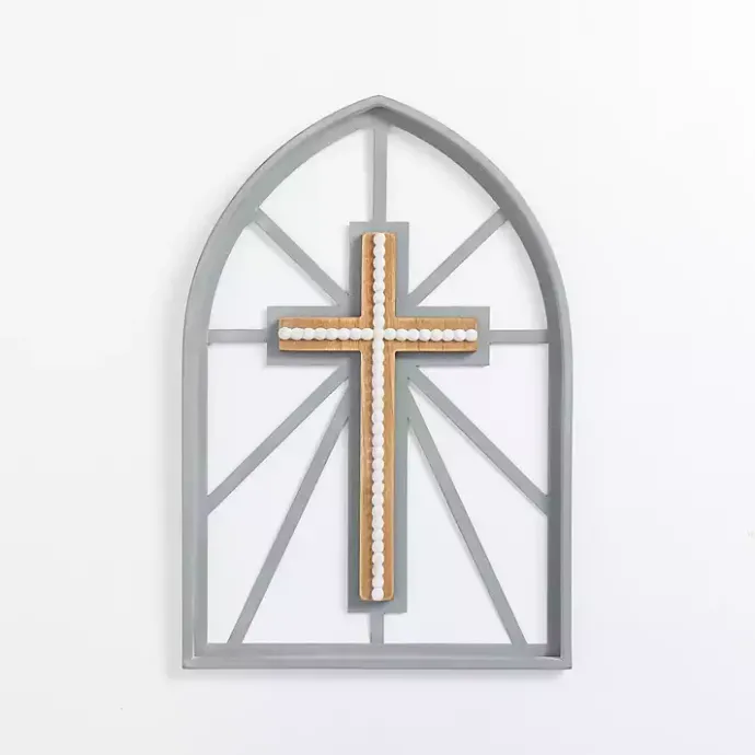 Put a lovely symbol of faith on your space with this Gray Beaded Cathedral Cross Wall Plaque. It will add a graceful beauty and sentimental touch to your wall decor!
