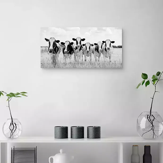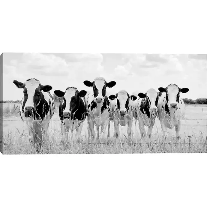 Bring the barnyard indoors in an elegant way with this Grazing Cow Monochrome Canvas Art Print! The black and white hues combined with the photographed style make this piece perfect for your rustic home.