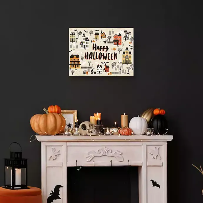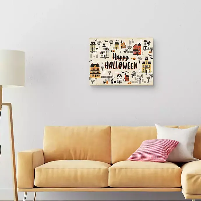 You’ll feel a shiver down your spine when you see this festive Halloween wall art. The Happy Halloween Town Halloween Wall Art is hauntingly stylish.