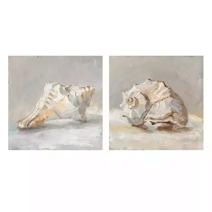 Our Impressionist Shell Canvas Art Prints feature two stunning still life artworks that belong in your cozy cottage by the sea. You’ll love the soft, sand-colored tones and unique conch shell angles.