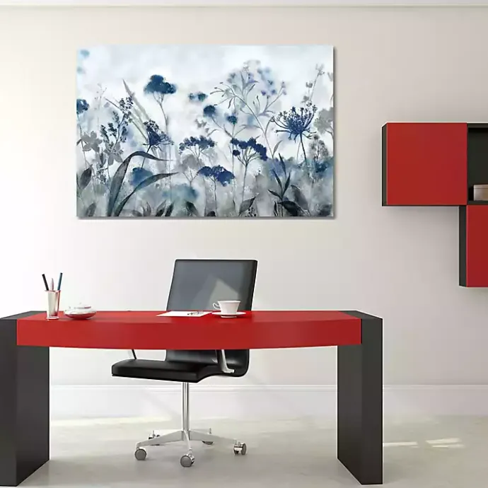 Combining wild, wispy flowers with deep blue tones, this Inky Indigo Canvas Art Print is sure to bring a bold and intriguing style to any your spot in your home!