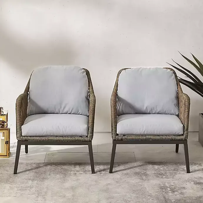 Make your outdoor space homier with these Metal Rope Outdoor Chairs with Cushions. With their natural rope style and comfy cushions, these chairs will give your patio a cozy, relaxed look everyone will enjoy!