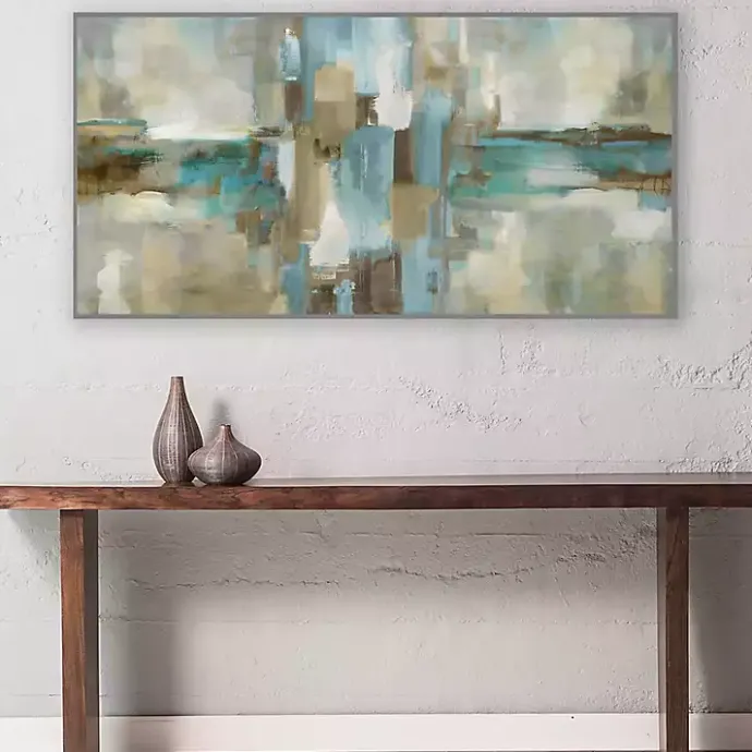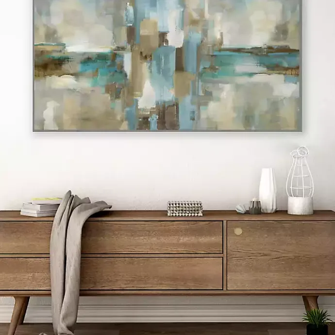 Put the blue and gray pallet of this Mirage Framed Canvas Art Print onto your wall for a subtle touch to a neutral room. The abstract nature completes the look.