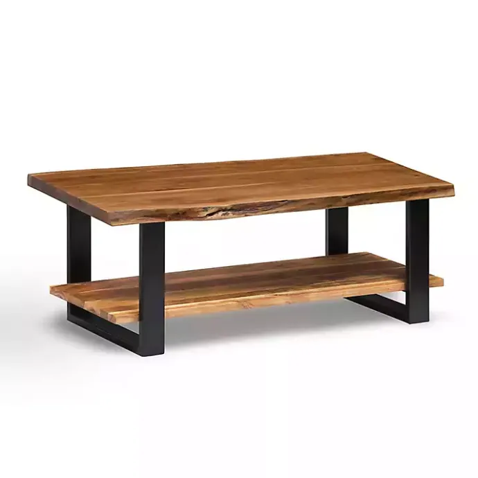 This Natural Wood and Metal Coffee Table will complete your living room. The live edge wood design makes each table unique! Plus, the natural finish and black metal accents will look beautiful with any decor.