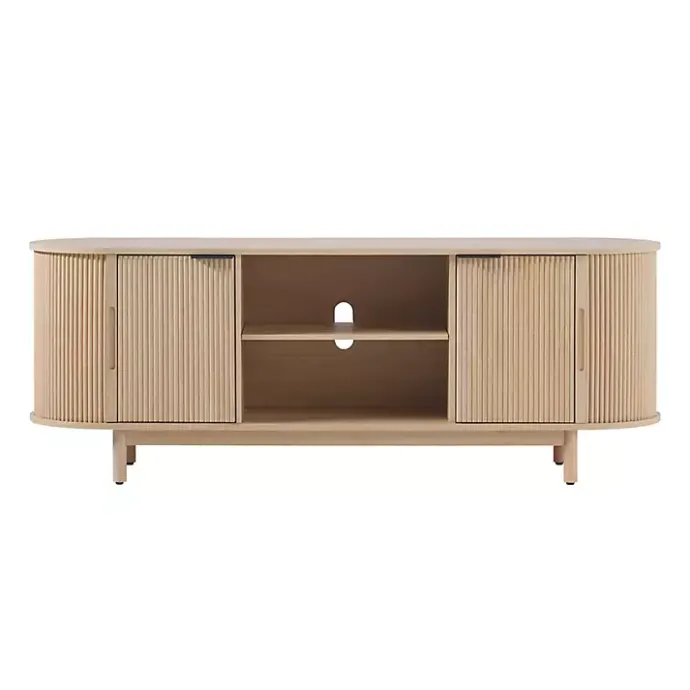 This Natural Wood Reeded Oval TV Stand is made with style and versatility in mind! Reeded door fronts elevate the design, combining sleek looks and practical functionality. You’ll love the combination of concealed cabinets and open cubbies!