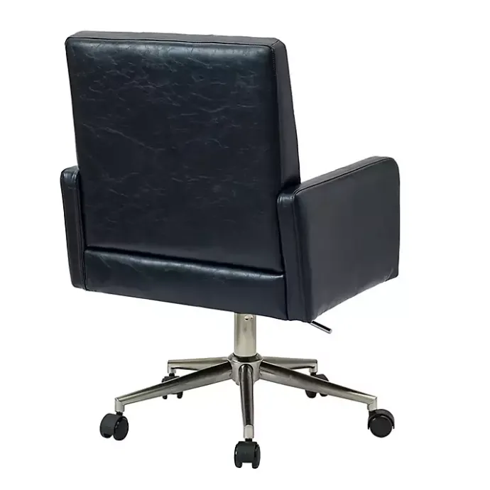 Elevate your workspace with our Navy Blue Tufted Faux Leather Swivel Office Chair! The warmth of the navy faux leather will transform your office into a relaxing oasis so you can work in peace and comfort!