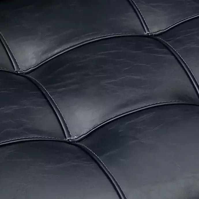 - Upholstered in a navy blue faux leather fabric