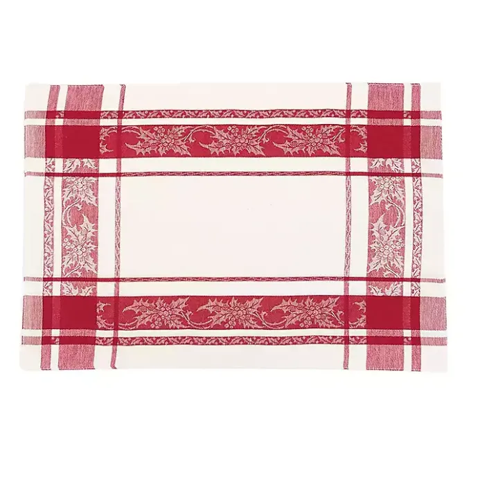 Add a touch of seasonal charm to your dinner table with these Red Jaquard Plaid Reversible Placemats! You’ll love how the holly leaf details look with your farmhouse Christmas decor.