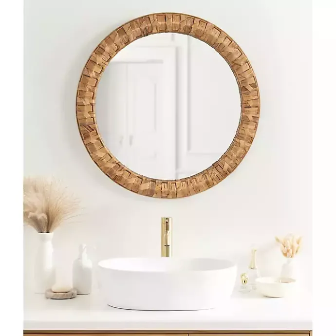 Make any room feel bigger and brighter with this Round Natural Woven Water Hyacinth Wall Mirror. Its hand-woven frame is ideal for a coastal or boho look!