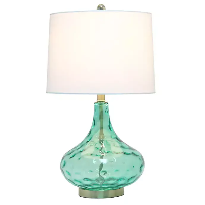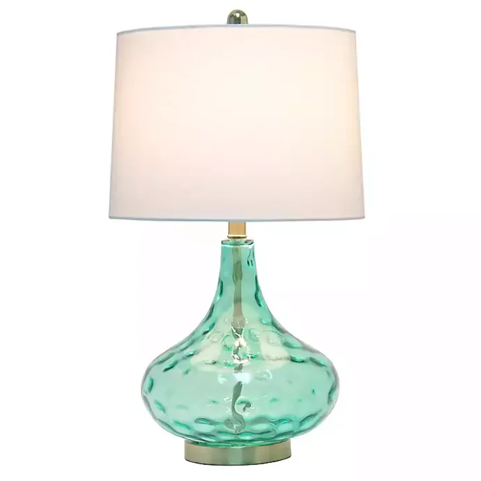 This Seafoam Dimpled Glass Teardrop Table Lamp will brighten up your space with light and style. It makes a wonderful addition to your entryway or bedside!