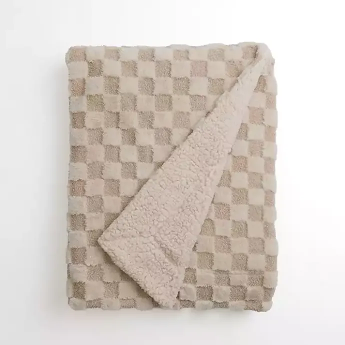 Snuggle up this holiday season with our Taupe Faux Fur and Boucle Checkerboard Throw. With a classic pattern made up of cozy, alternating textures, it will bring warmth to your space!