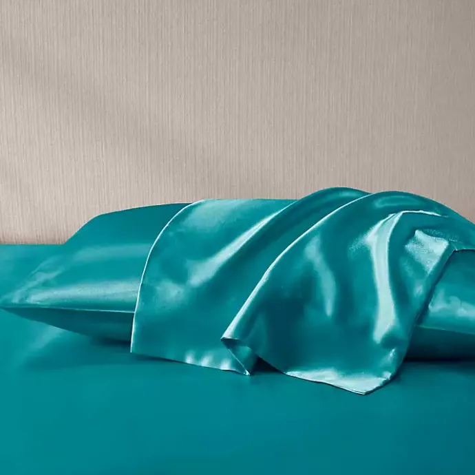 Add a lavish touch to your bed with the Teal Satin Standard 2-pc. Pillow Case Set. These silky high-luster satin pillowcases provide a smooth surface that reduces friction to your hair and skin, giving you a luxurious night’s sleep.